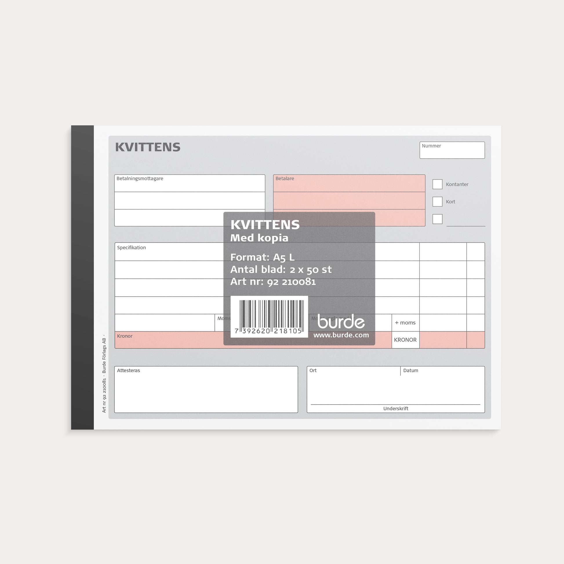 Kvittens A5L med 1 kopia 2 x 50 blad