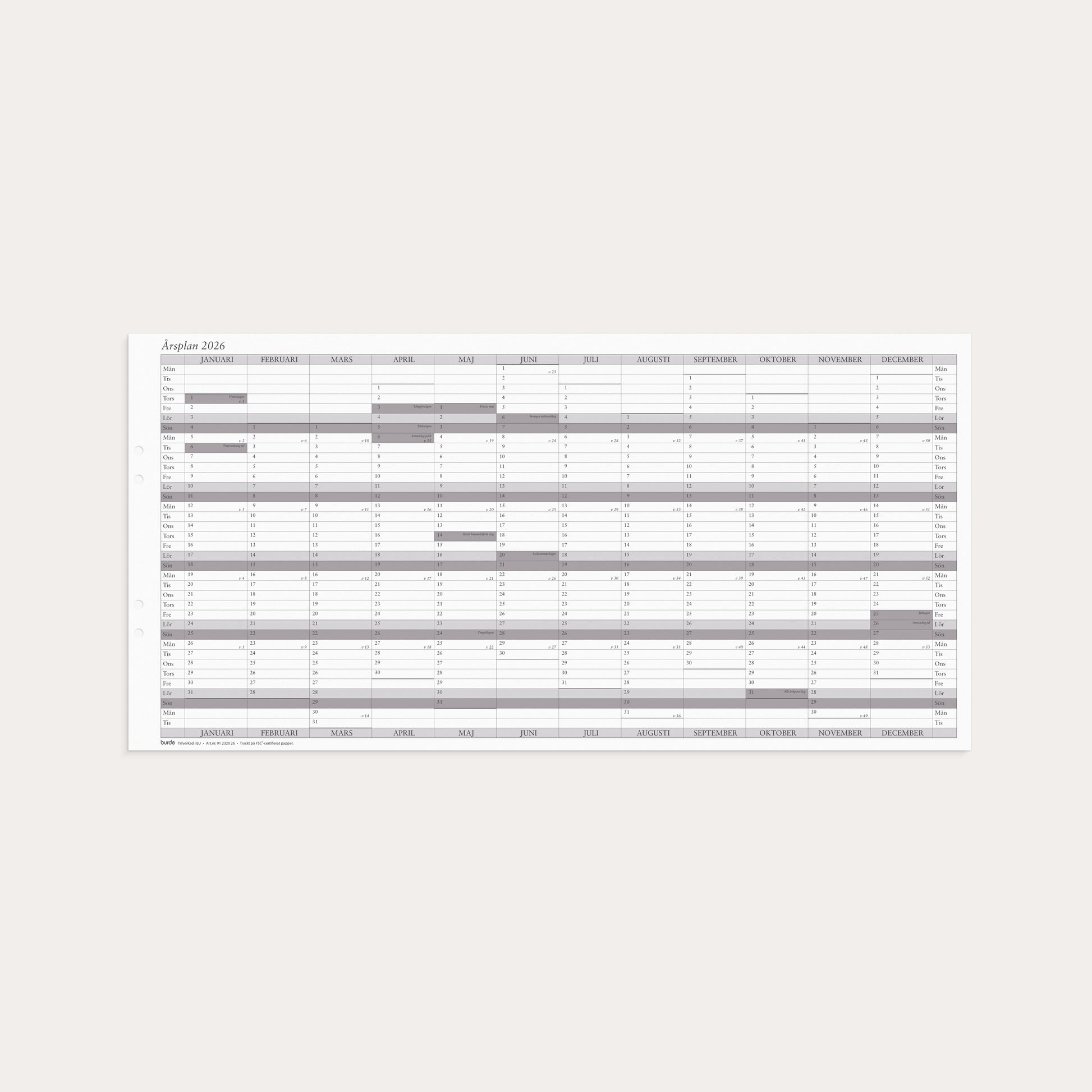 Väggkalender 2026 Årsplan 5/fp