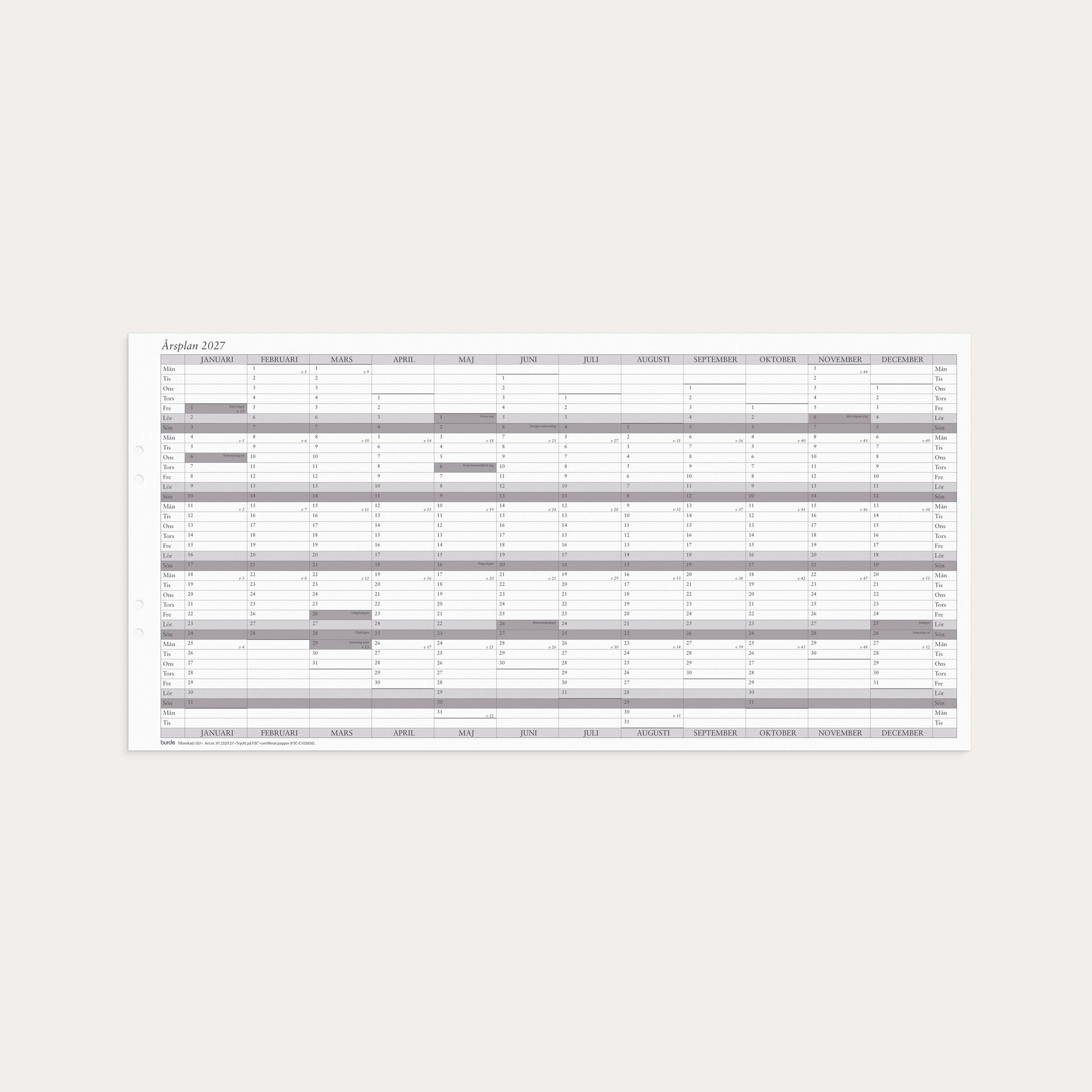 Väggkalender 2027 Årsplan 5/fp